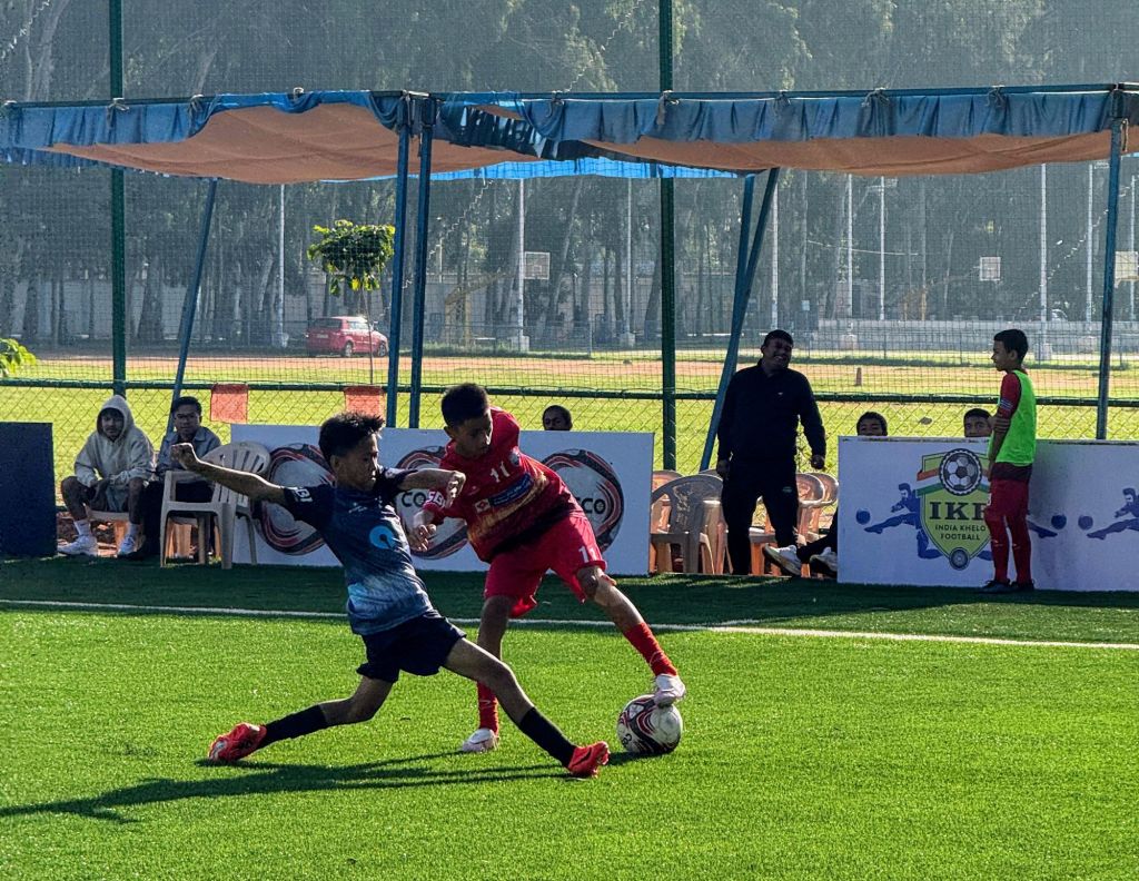 Vidyachal International School (Bihar) booked its semifinal berth with a hard-fought 2-1 win over Mothers Pride Public School (Himachal Pradesh). Himachal’s Sukhpreet (23’) opened the scoring, but Shubham turned the tide for Bihar with a decisive brace (25+2’, 63’).