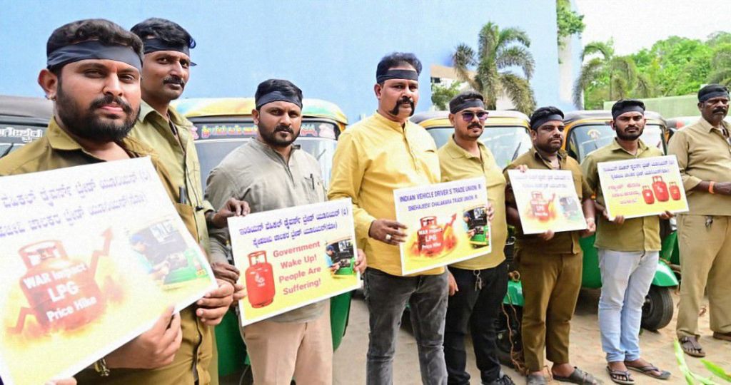 ಇಂಡಿಯನ್ ವೆಹಿಕಲ್ ಡ್ರೈವರ್ಸ್ ಟ್ರೇಡ್ ಯೂನಿಯನ್, ಸಂಚಾರಿ ಚಾಲಕರ ಸೇವಾ ಟ್ರಸ್ಟ್ ಹಾಗೂ ಸ್ನೇಹಜೀವಿ ಚಾಲಕರ ಸಂಘಗಳ ಸಂಯುಕ್ತ ಆಶ್ರಯದಲ್ಲಿ ನಡೆದ ಈ ಪ್ರತಿಭಟನೆಯಲ್ಲಿ ಚಾಲಕರು ವಿಭಿನ್ನ ರೀತಿಯಲ್ಲಿ ಆಕ್ರೋಶ ವ್ಯಕ್ತಪಡಿಸಿದರು. ಫ್ರೀಡಂ ಪಾರ್ಕ್ ಮುಂಭಾಗ ಆಟೋಗಳಿಗೆ ಹಗ್ಗ ಕಟ್ಟಿ ಎಳೆಯುವ ಮೂಲಕ ಸಂಕಷ್ಟದ ಸಂಕೇತ ನೀಡಿದ ಅವರು, ಖಾಲಿ ಅಡುಗೆ ಅನಿಲ ಸಿಲಿಂಡರ್ಗಳನ್ನು ಪ್ರದರ್ಶಿಸಿ ಸರ್ಕಾರದ ಗಮನ ಸೆಳೆಯಲು ಪ್ರಯತ್ನಿಸಿದರು. ಕೇಂದ್ರ ಸರ್ಕಾರದ ವಿರುದ್ಧ ಘೋಷಣೆಗಳನ್ನು ಕೂಗಿ ತೀವ್ರ ಅಸಮಾಧಾನ ವ್ಯಕ್ತಪಡಿಸಿದರು.