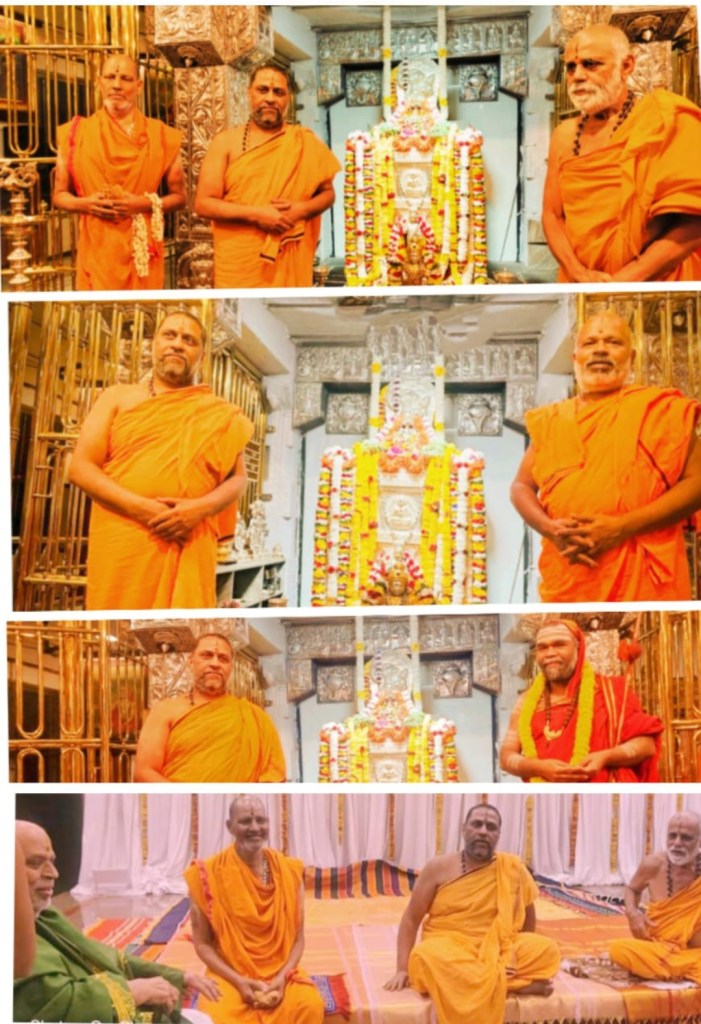 “ರಾಯರ ಸನ್ನಿಧಿಯಲ್ಲಿ ಯತಿಗಳ ಸಮಾಗಮ” ಮಂತ್ರಾಲಯ ಶ್ರೀ ರಾಘವೇಂದ್ರ ಸ್ವಾಮಿಗಳ ಮಠದ ಪೀಠಾಧಿ ಪತಿಗಳಾದ ಪರಮ ಪೂಜ್ಯ ಶ್ರೀ 108 ಶ್ರೀ ಸುಬುಧೇಂದ್ರತೀರ್ಥ ಶ್ರೀಪಾದಂಗಳವರು ಹಾಗೂ ಶ್ರೀ 108 ಶ್ರೀ ಹರಿ ಹರ ಪುರ ಮಠದ ಸ್ವಯಂ ಪ್ರಕಾಶ ಶ್ರೀ ಸಚ್ಚಿದಾನಂದ ಸರಸ್ವತಿ ಸ್ವಾಮಿಗಳು ಹಾಗೂ ಬಾಳಗಾರು ಅಕ್ಷೂಭ್ಯ ತೀರ್ಥ ಮಠದ 108 ಶ್ರೀ ರಾಮಪ್ರಿಯತೀರ್ಥ ಸ್ವಾಮಿಗಳು, ಸೋಸಲೆ ವ್ಯಾಸರಾಜ ಮಠದ ಶ್ರೀ 108ಶ್ರೀ ವಿದ್ಯಾಶ್ರೀಶ ತೀರ್ಥ ಸ್ವಾಮಿಗಳು ಹಾಗೂ ಶ್ರೀ108 ಶ್ರೀ ವಿದ್ಯಾ ವಿಜಯ ತೀರ್ಥ ಸ್ವಾಮಿಗಳು ಬೆಂಗಳೂರಿನ ಜಯನಗರ ರಾಯರ ಮಠದಲ್ಲಿ ರಾಯರ ಬೃಂದಾವನವನ್ನು ದರ್ಶಿಸಿ ನಂತರ ಮಂತ್ರಾಲಯ ಶ್ರೀಗಳ ಜೊತೆಯಲ್ಲಿ ಸಮಾಗಮದೊಂದಿಗೆ ಭಕ್ತರಿಗೆ ಅನುಗ್ರಹ ಸಂದೇಶ ನೀಡಿದರು, ಈ ಸಂದರ್ಭದಲ್ಲಿ ಪಂಡಿತ ಕೇಸರಿ ರಾಜಾ, ಎಸ್ ಗಿರಿ ಆಚಾರ್ಯರು ,ಸುಧೀಂದ್ರ ಆಚಾರ್ಯ, ಗೌತಮ ಆಚಾರ್ಯ, ಕೆ ವಾದಿಂದ್ರಾ ಚಾರ್ಯ, ಐ ಪಿ, ನರಸಿಂಹಮೂ ರ್ತಿ ಆಚಾರ್ಯ ಶ್ರೀ ನಂದಕಿಶೋರ್ ಆಚಾರ್ಯ, ಡಿ,ಪಿ ಅನಂತ ಆಚಾರ್ಯ, ಪುರಾಣಿಕ್ ಅನಂತ ಆಚಾರ್ಯ ಹಾಗೂ ಶ್ರೀಮಠದ ಸಿಬ್ಬಂದಿಗಳು ಶಿಷ್ಯರು ಭಕ್ತರು ಇನ್ನು ಹಲವಾರು ಗಣ್ಯರು ಭಾಗವಹಿಸಿದ್ದರು.