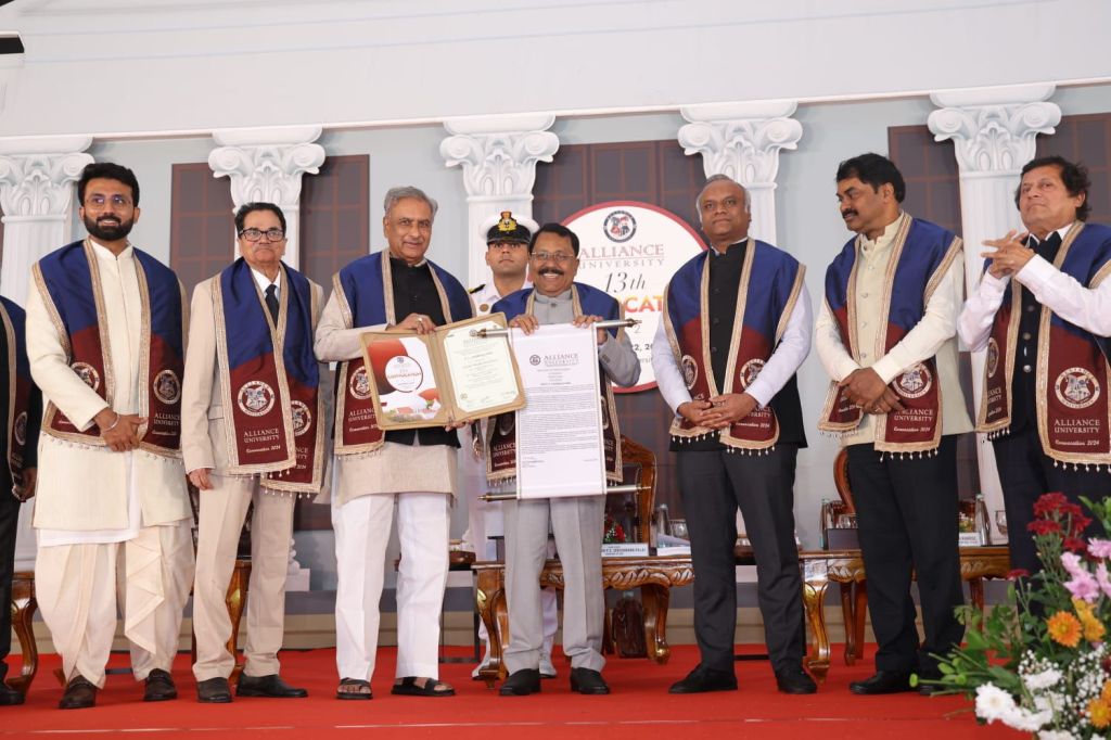 BENGALURU/ December 22, 2024: The 13th Convocation of Alliance University, Bengaluru, saw a total of 1,145 students receive UG and PG degrees and PhDs in multiple streams. The ceremony was graced by distinguished dignitaries. His Excellency Shri PS Sreedharan Pillai, Hon’ble Governor of Goa, was the Chief Guest at the ceremony. Guests of Honour included Shri Basavaraj Shivalingappa Horatti, Chairman of the Karnataka Legislative Council; Shri Priyank Mallikarjun Kharge, Minister for Rural Development & Panchayat Raj, IT & BT, Govt. of Karnataka; and Dr. G. Satheesh Reddy, Chairman, Aeronautical Development Agency. Honorary doctorates were conferred upon His Excellency Shri PS Sreedharan Pillai; Padma Bhushan Dr. VK Saraswat; Padma Shri Anju Bobby George, and Shri Prakash Rao, acknowledging their exceptional contributions to their respective fields.